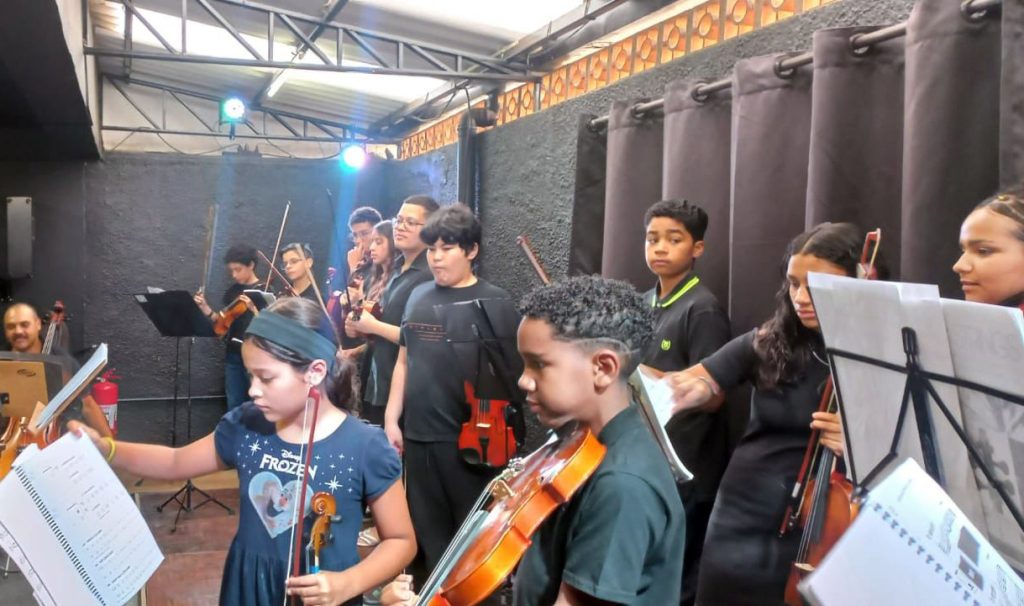 Se apresentaram os alunos André Martins, Bryan Euzébio Barbosa, Ikaro Sachida, Giovanna Ângelo, Henrique de Paiva Lee, Sara Freire Daniel, Sofia Freire Daniel, Arthur Pereira Manoel, Daniel Sales de Oliveira, Denilton Amaro dos Santos, Flávia Alessandra da Silva Calado, Lucas Soares Oliveira, Guilherme Roza da Silva e Yan Sales Sabino. Também participaram do espetáculo a aluna Graziely Cotrim, de piano, e Henrique Barbosa, aluno do conservatório e pai do aluno Bryan, no violoncelo.