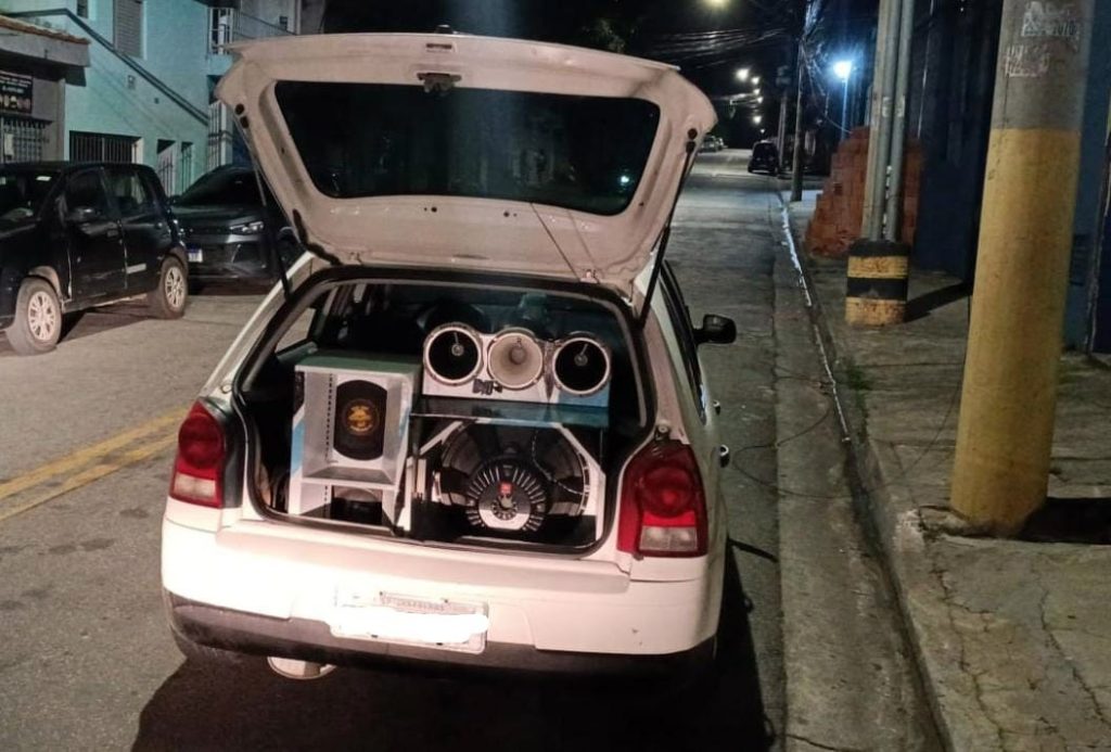 Agentes da Inspetoria Norte da Guarda Civil Municipal (GCM) de Guarulhos flagraram na noite de domingo (14) um veículo VW Gol causando perturbação do sossego no Jardim Ponte Alta I. O condutor trafegava pela via com som excessivo, sendo interceptado para averiguação. Na oportunidade, foi constatado que o veículo possuía potentes caixas acústicas e, em consequência, foi autuado e removido ao pátio de recolhimento.
