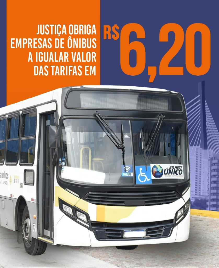 Por determinação da Justiça, a tarifa de ônibus em Guarulhos terá seu valor unificado e fixado em R$ 6,20, independentemente da forma de pagamento. O valor fixado entra em vigor a partir da 0h de 1º de janeiro de 2026, em cumprimento obrigatório a decisão judicial contida no processo nº 1038557-12.2024.8.26.0224, e em atendimento ao Decreto nº 43.527/25. Com a mudança, professores e estudantes continuarão tendo direito à meia passagem, no valor de R$ 3,10.