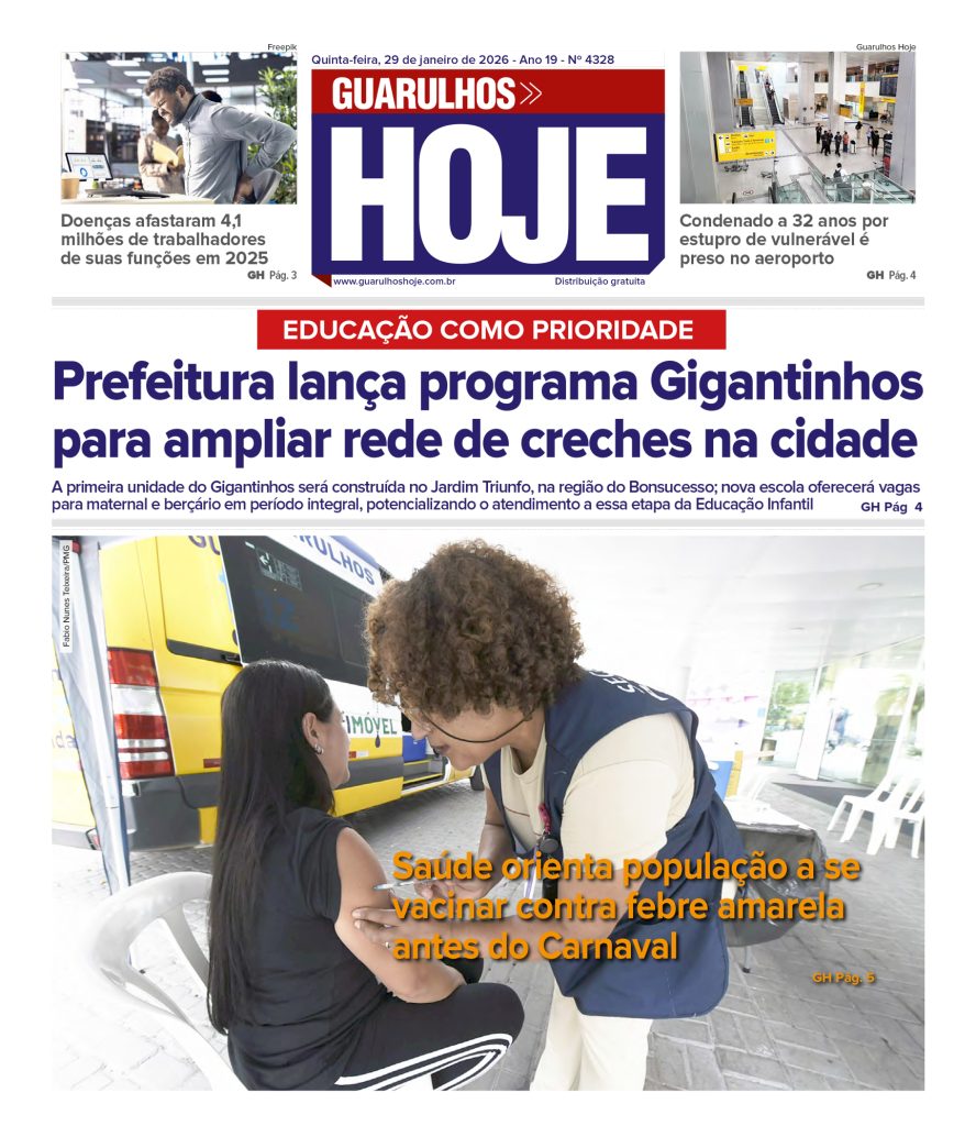 Jornal Guarulhos Hoje – Ed. 4328 – 29/01/2026 Redação Guarulhos Hoje 18 horas atrás Abrir em tela cheia