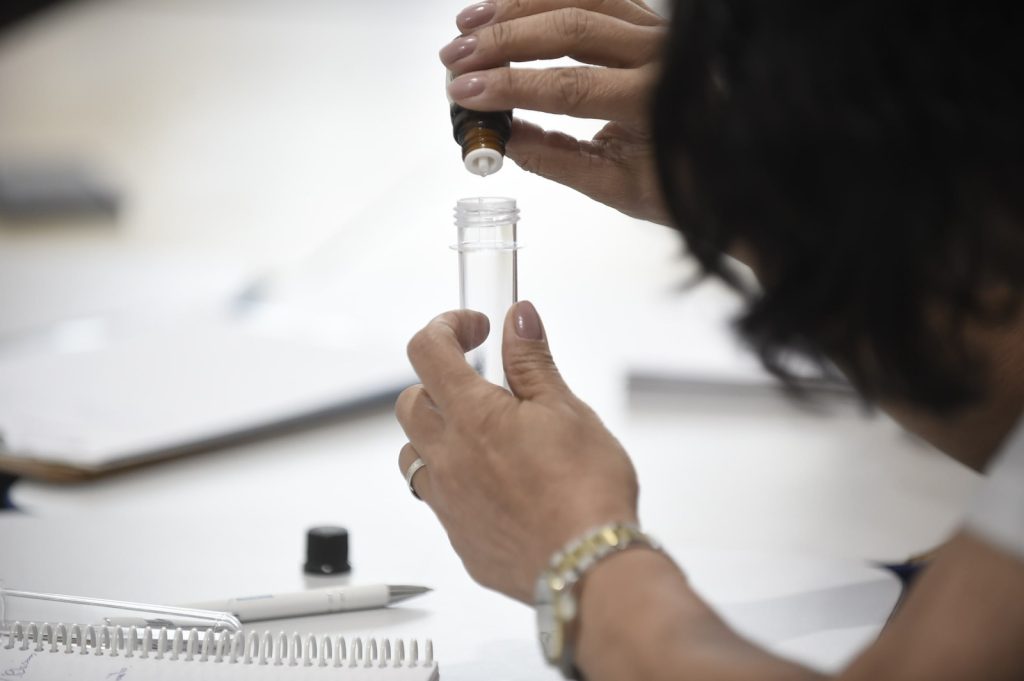 Durante o evento, as participantes produziram um blend (mistura) capilar personalizada com óleos essenciais diluídos em óleo vegetal para o fortalecimento da raiz do cabelo, estímulo ao crescimento e aumento da densidade do fio.