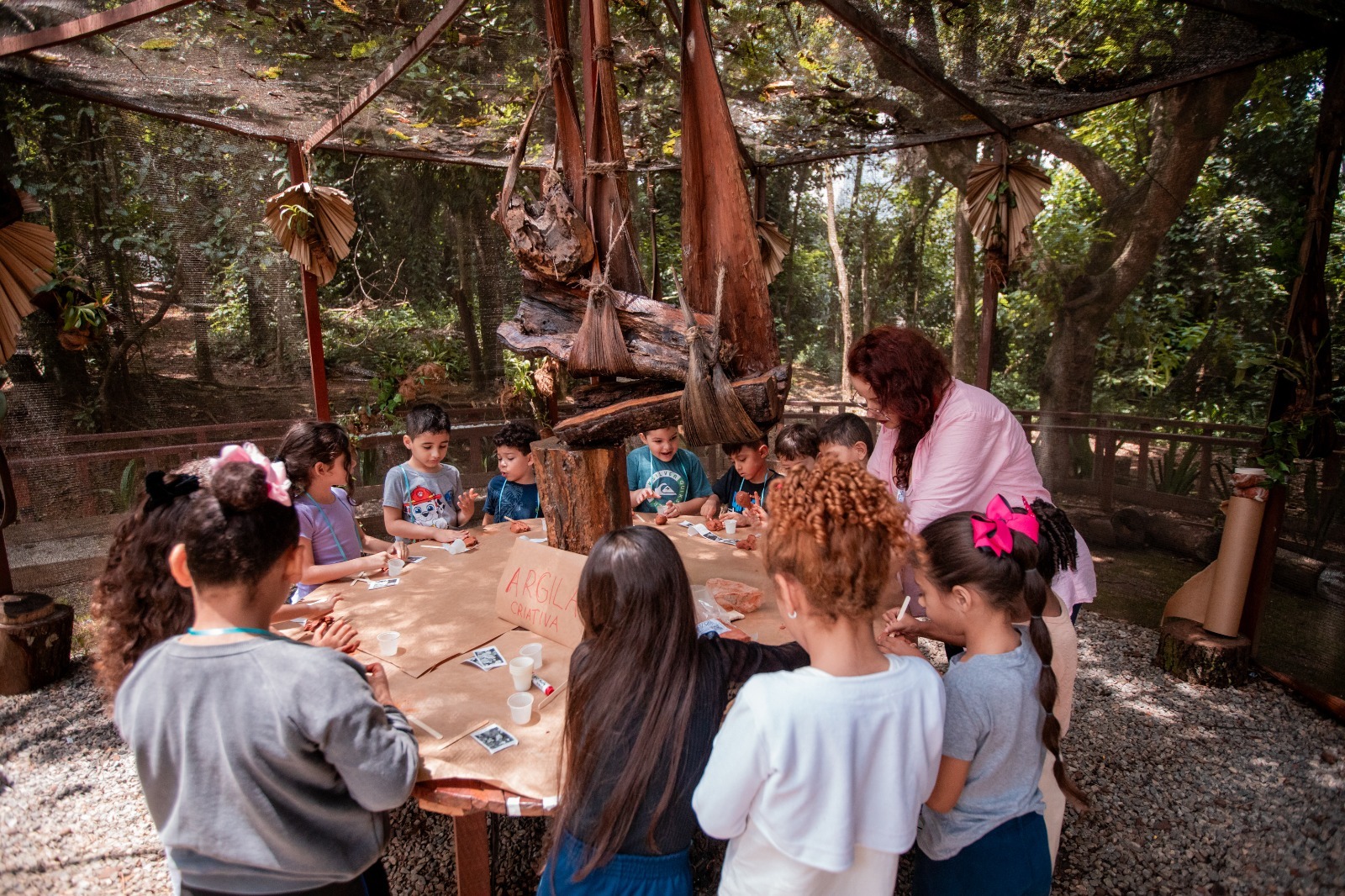 A professora Andressa e a turma percorreram o espaço da horta com a meta de observar borboletas e hortaliças, além de fotografar aquilo que mais lhes chamava atenção. Em seguida, os alunos seguiram para o orquidário, onde participaram de uma oficina criativa e criaram, com argila, as imagens capturadas pela câmera instantânea da educadora.