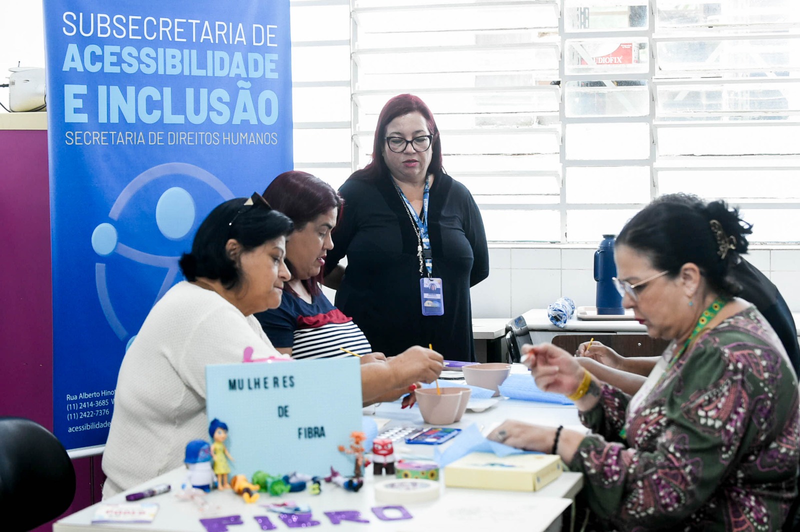 Nesta sexta-feira (27) a Subsecretaria de Acessibilidade e Inclusão promoveu a 3ª edição da vivência arte terapêutica gratuita Mulheres de Fibra: Transformando Dor em Cor para um grupo de mulheres diagnosticadas com fibromialgia, em sua sede, no Macedo. A proposta foi possibilitar que as participantes expressassem suas emoções através da pintura em aquarela, em um ambiente seguro com espaço para conversa e compartilhamento de experiências, formando uma rede de apoio entre elas.