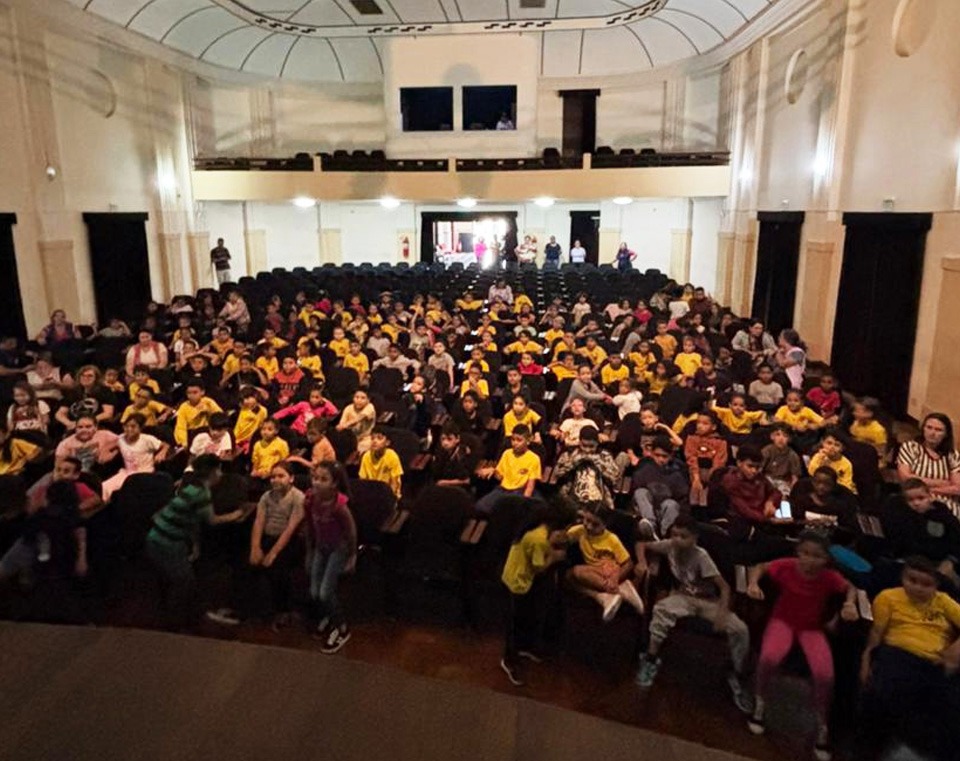 A Secretaria de Cultura e Turismo de Guarulhos realizou, na segunda-feira (2), a primeira sessão do Cine Padre Bento com sessões gratuitas de cinema no Teatro Padre Bento, com programação voltada ao público infantil e ao atendimento a escolas da rede pública. A estreia recebeu cerca de 400 alunos da Escola Estadual Dr. Jair Miranda, que ocuparam o teatro com entusiasmo, atenção e reações espontâneas que marcaram a sessão como um momento de descoberta e diversão.