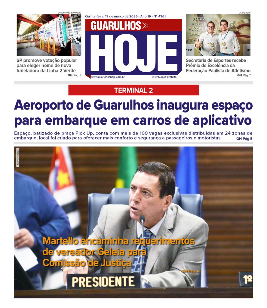 Jornal Guarulhos Hoje – Ed. 4361 – 19/03/2026 Redação Guarulhos Hoje 5 horas atrás Abrir em tela cheia