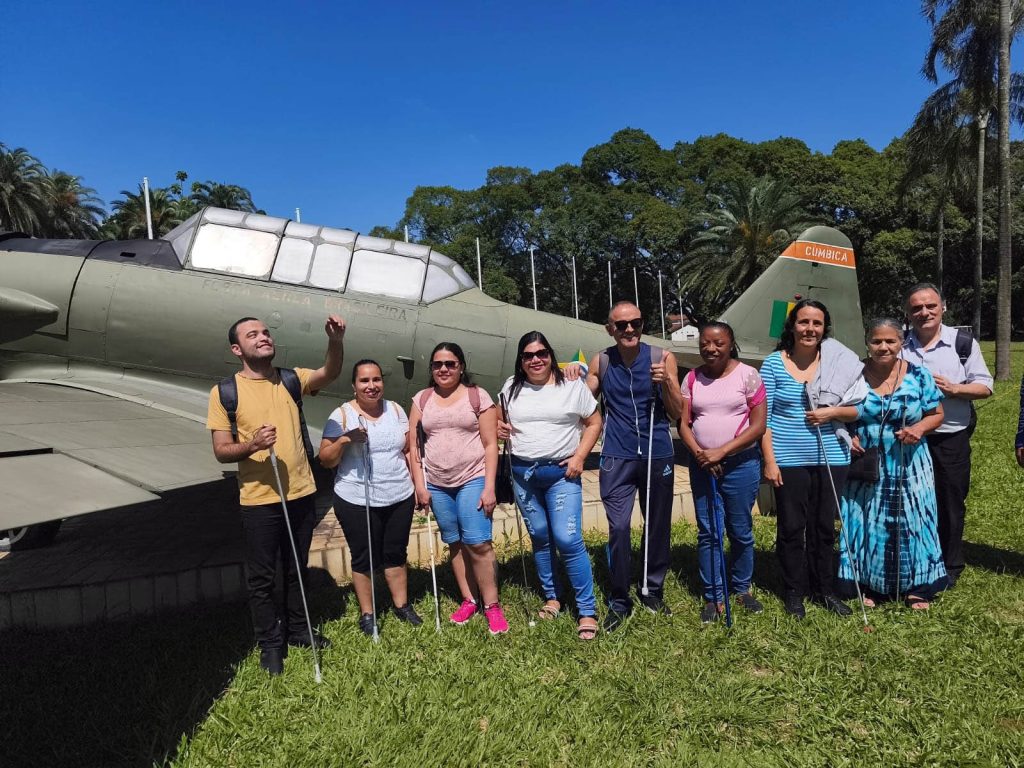 Nesta terça-feira (24) a Subsecretaria de Acessibilidade e Inclusão da Prefeitura de Guarulhos levou uma turma de alunos com deficiência visual do projeto Práticas Educativas para a Inclusão Social (Peis) para uma visita guiada à Base Aérea de São Paulo/Cumbica. A atividade faz parte do projeto Rolezinho de Bengala, que apresenta espaços culturais, educativos, de lazer e turísticos. Desta forma os alunos colocam em prática as técnicas aprendidas nas aulas de orientação e mobilidade do Peis, conquistando autonomia e segurança para que possam sair de casa conhecer diferentes locais e equipamentos da cidade.