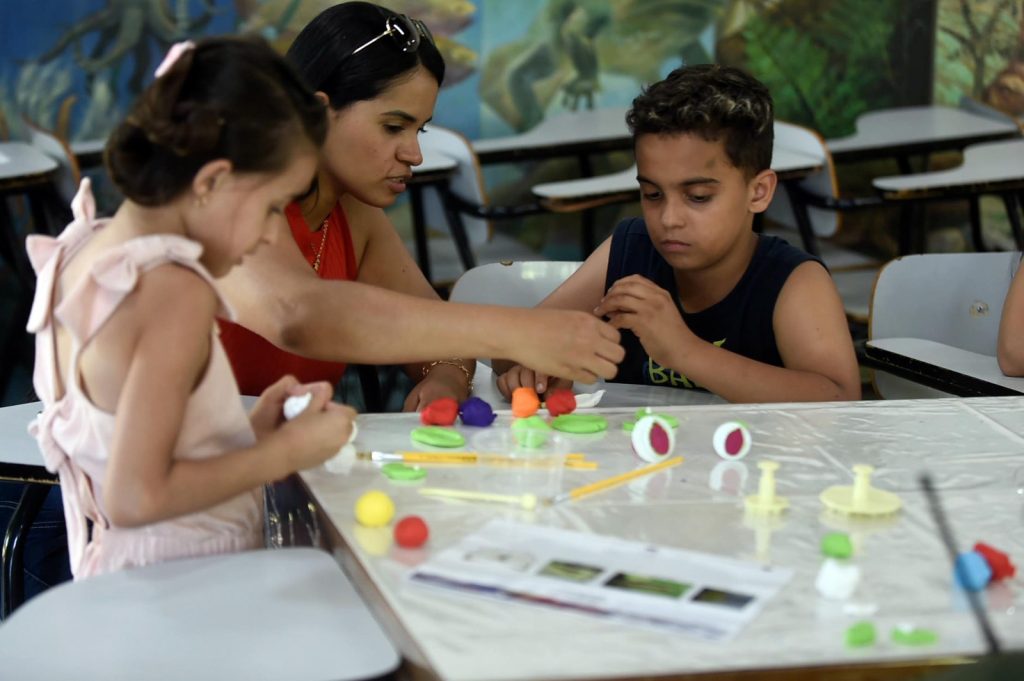 Empolgado para começar logo a manusear o biscuit (tipo de massinha) de diversas cores, Rafael Duarte, de 4 anos, participou da brincadeira e comemorou: “Fiz uma lagarta com a mão”. O garotinho participou da oficina ao lado pai, Diego Daniel Duarte, 42 anos. “Achei muito interessante a atividade. Cada faixa etária aproveita de um jeito diferente”, disse o servidor público da Prefeitura de São Paulo.