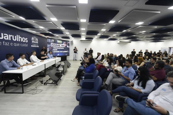 A Feira do Estudante de Guarulhos 2026 será nos dias 2 e 3 de setembro, das 8h às 22h, no Espaço Inter (avenida João Cavalari, 83, Ponte Grande). O lançamento oficial do maior evento do Alto Tietê para a juventude foi acompanhado, no auditório do Paço Municipal, por um público de cerca de 70 pessoas, entre representantes de universidades, faculdades, cursos pré-vestibulares, técnicos e profissionalizantes, escolas de idiomas e empresas de estágios e de empregos.