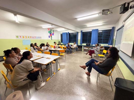 A Prefeitura de Guarulhos, por intermédio da Subsecretaria da Igualdade Racial, realizou no sábado (11) duas formações, abordando racismo e xenofobia, na EPG Zuzu Angel, no Jardim Vila Alzira, voltadas aos docentes e aos servidores da unidade escolar. As atividades ocorreram em horários distintos, durante a aula de trabalho pedagógico coletivo (ATPC) – período da jornada de trabalho dos profissionais da educação voltado ao planejamento, estudos e formação continuada, sem a presença de estudantes.