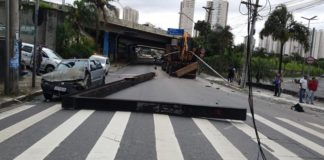Caminhão derruba limitador de altura do viaduto da Via Dutra sobre...