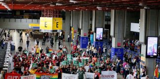 Funcionários da Starbucks realizam protesto no Aeroporto de Guarulhos