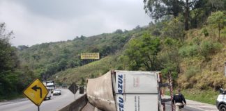 Caminhão carregado de cerveja tomba na Fernão Dias