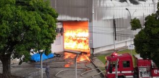 Corpo de Bombeiros continua no combate ao incêndio em empresa na...