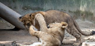 Filhotes de leão são apresentados ao público no Zoo Safari