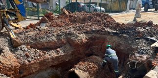 Obras em galeria de águas pluviais interrompem o trânsito na rua...