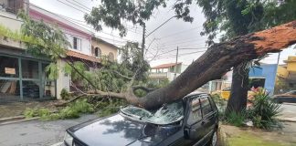 Temporal derruba árvore em cima carro, onde estava o motorista, na...