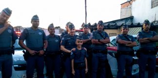 Além de ganhar festa, garoto é presenteado com farda da PM...