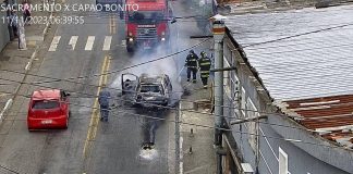 Central de Inteligência de Guarulhos flagra veículo em chamas no Jardim...