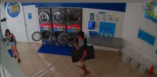 Criminosos são flagrados furtando televisão de lavanderia na Vila Progresso
