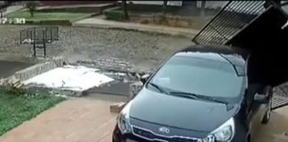 Motorista dá ré em carro ao sair da garagem e derruba...
