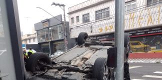 Acidente deixa carro capotado na Timóteo Penteado