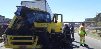 Acidente entre dois caminhões e três veículos deixa dois feridos na...