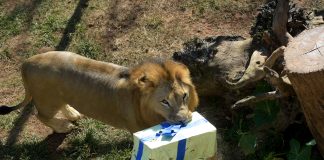 Leão Kalipha completa dois anos com festa de aniversário no Zoológico...