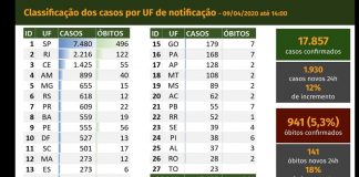 Brasil tem 941 mortes pelo novo coronavírus; País tem 141 óbitos...