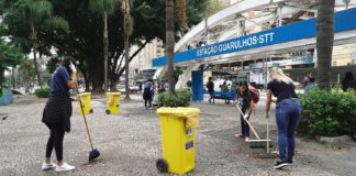 Alunos da UnG realizam limpeza da Praça IV Centenário com apoio...
