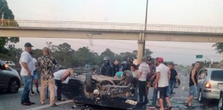 Após capotar, carro cai na via Dutra matando uma pessoa