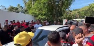 Torcedores protestam em frente ao CT do Flamengo e cercam carros...