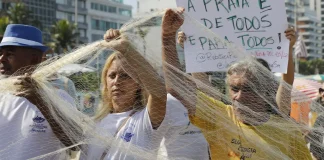Manifestantes protestam contra PEC das Praias na orla do Rio