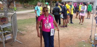 Idosa de muleta completa a prova da 4° Corrida e Caminhada...