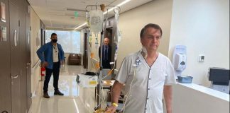 Sem sonda e sem máscara, Bolsonaro caminha por corredor do hospital