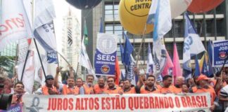 A manifestação é contra os juros, que segundo o sindicato, paralisa a produção