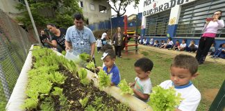 Semana da Alimentação termina com colheita em horta orgânica de escola