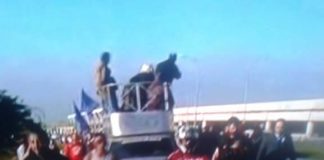 Manifestantes caminham até o Aeroporto Internacional de Guarulhos