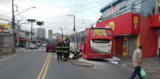 O principio de incêndio ocorreu quando o ônibus estava na avenida Otávio Braga de Mesquita, próximo ao supermercado Barbosa