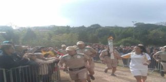 O homem foi detido por integrantes da Força Nacional após tentativa de apagar a Tocha Olímpica durante o seu trajeto pela avenida Salgado Filho, próximo ao Jardim Santa Mena