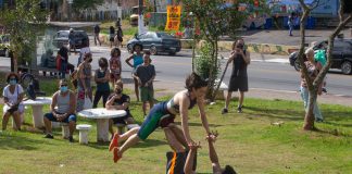 Artistas promovem intervenção urbana circense no Bosque Maia