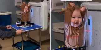 Vídeo de bebê ‘espremido’ em cilindro para fazer um exame...